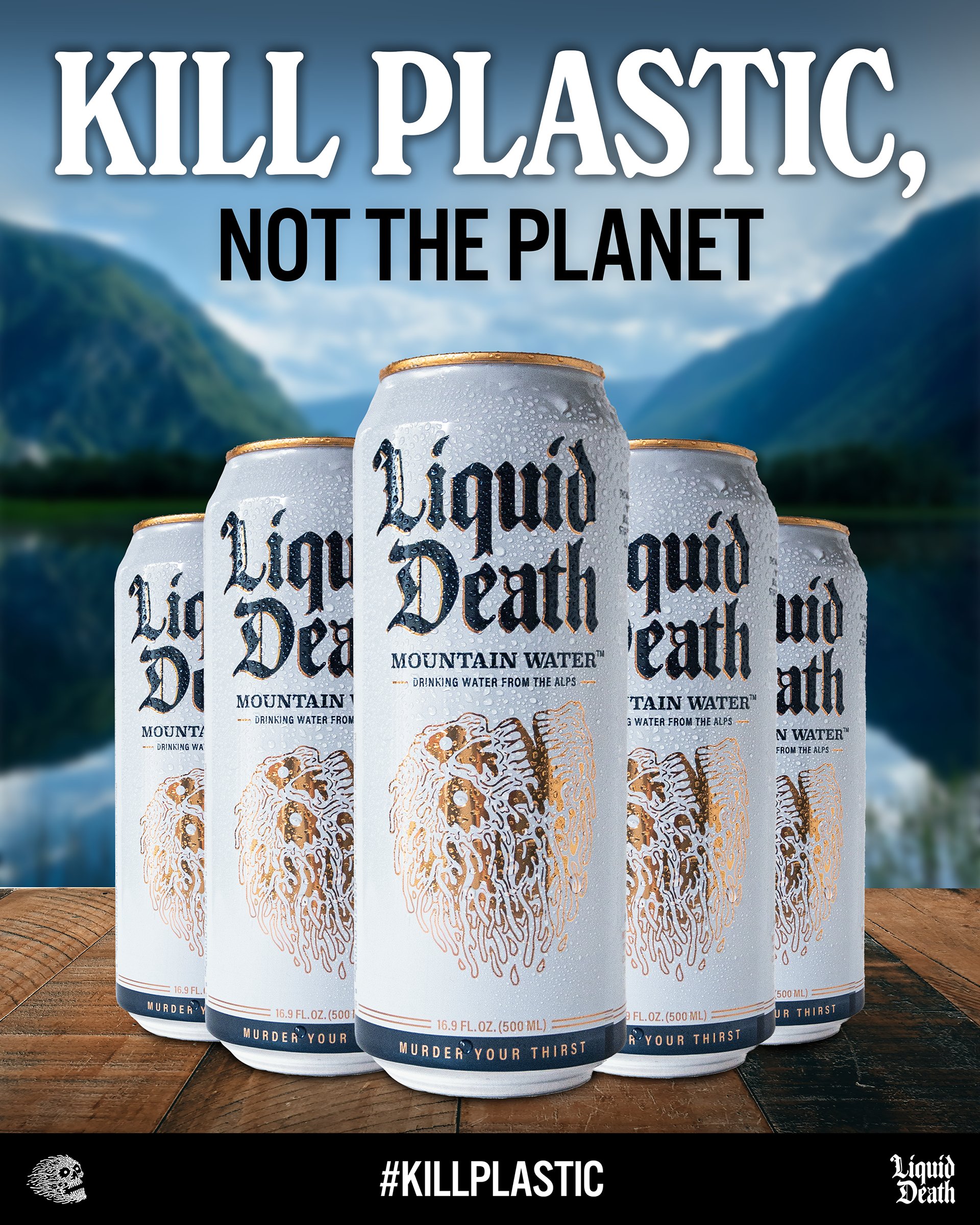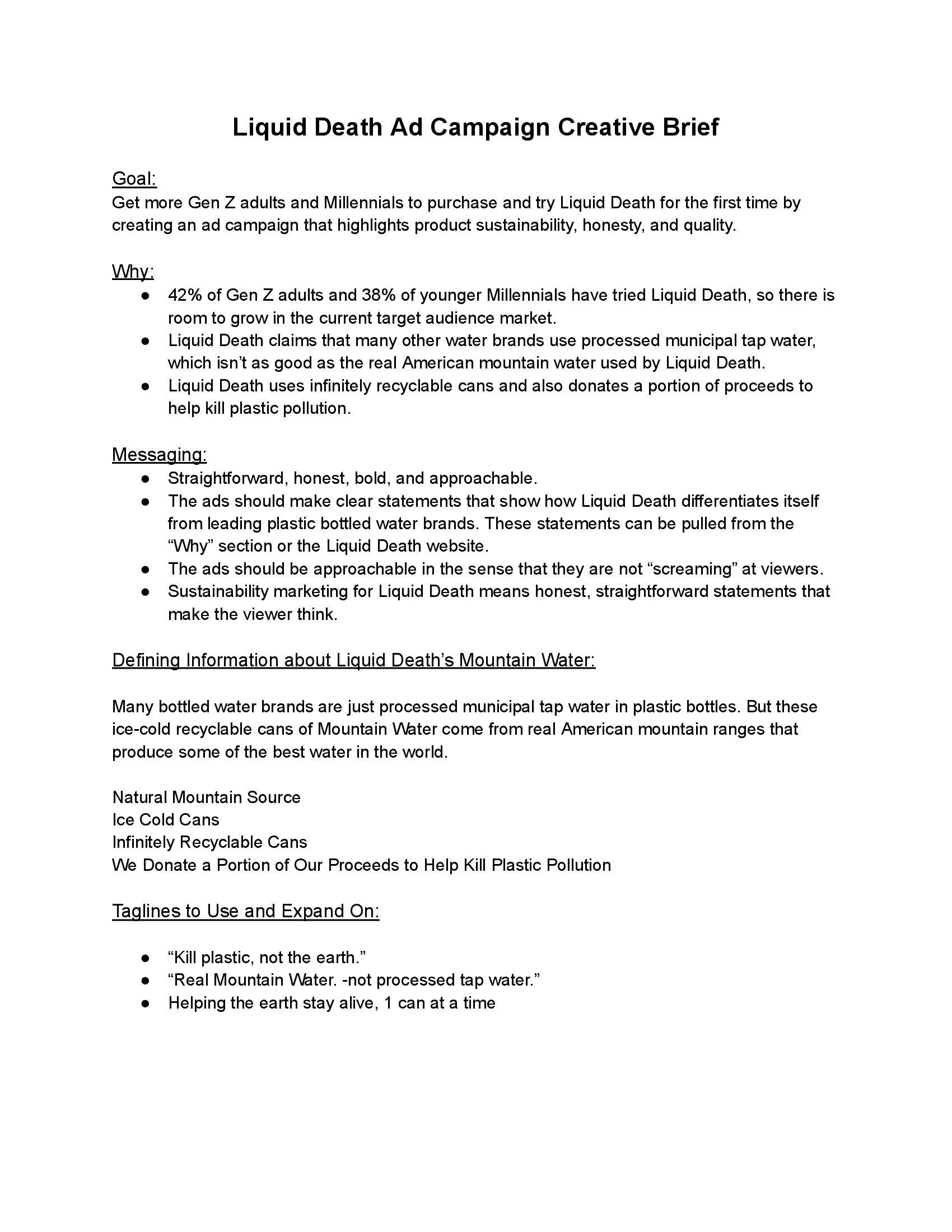 Goal: Get more Gen Z adults and Millennials to purchase and try Liquid Death for the first time by creating an ad campaign that highlights product sustainability, honesty, and quality.