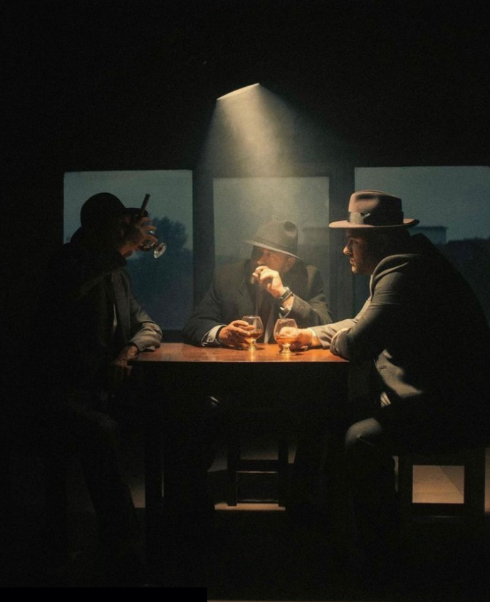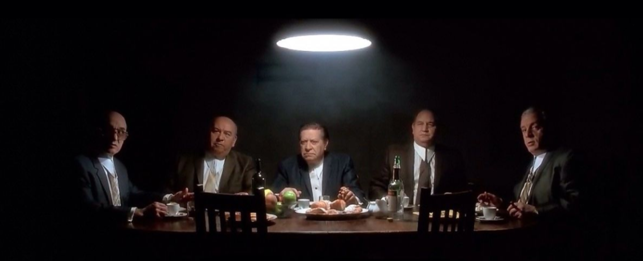A group of criminals all meet at a diner late at night AFTER they have committed a crime. They have dialogue that reveals all the exposition of who they are and what crime they commit, then eventually they start to think a rat is amongst them. They all start to sus each other out. One camera setup, all done in one take. Characters can get up and move around still, but the scene lives in one frame, and the story is told in one take format.